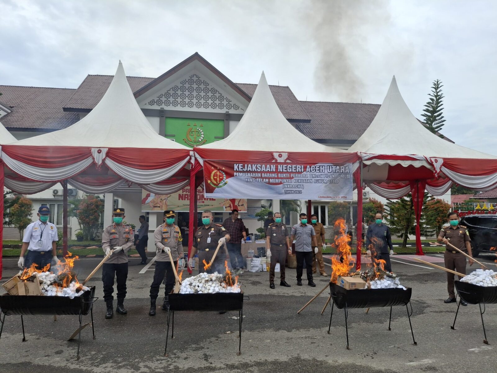 Batasaaceh.com— Kejaksaan Negeri (Kejari) Aceh Utara pemusnahan barang bukti perkara tindak pidana yang telah mempunyai kekuatan hukum tetap.