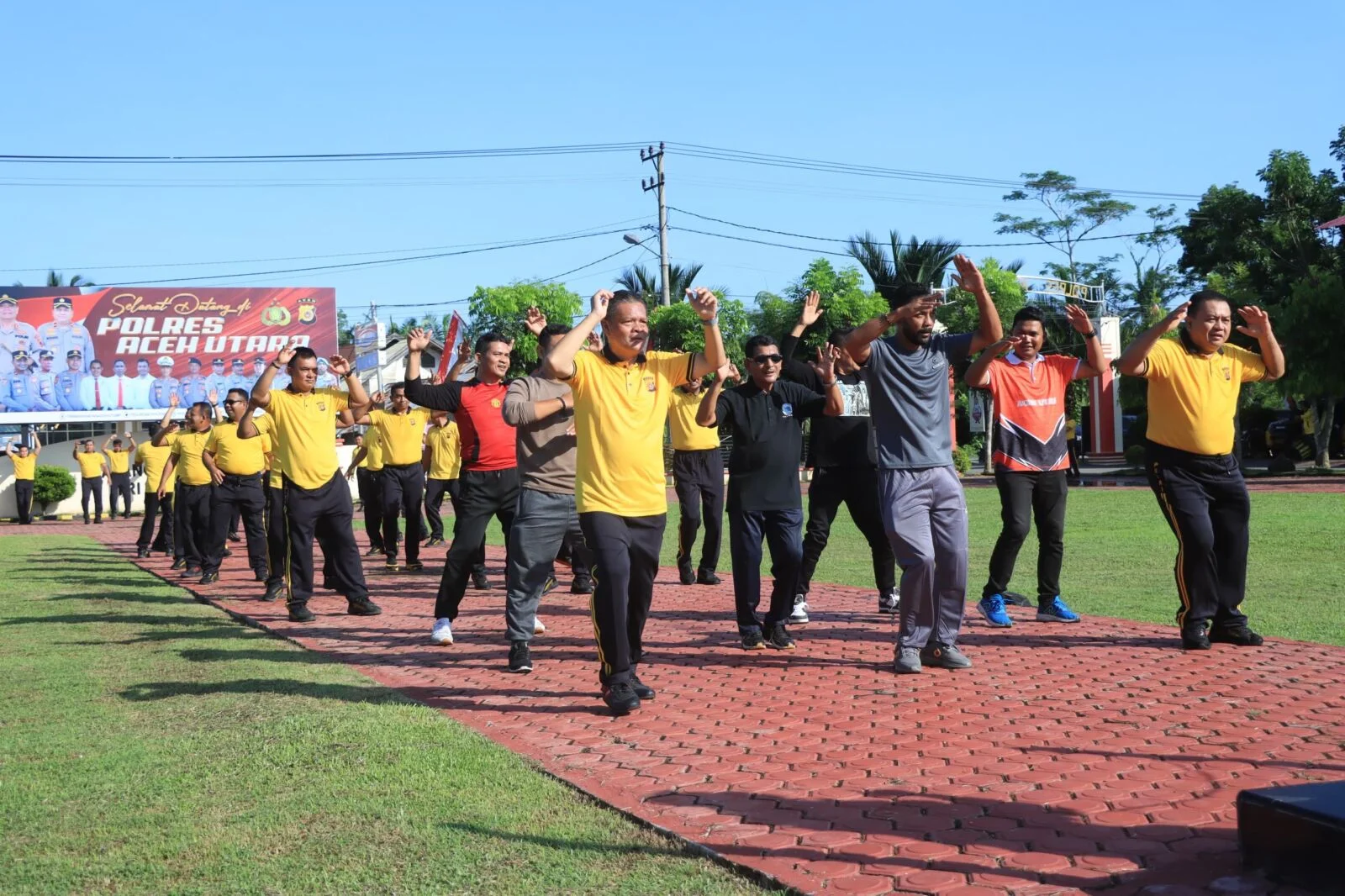 Olahraga Bersama ini dipimpin langsung oleh Kapolres Aceh Utara AKBP Trie Aprianto, S.H., M.H. dan didampingi oleh para Pejabat Utama (PJU) Polres Aceh Utara dan seluruh Personel serta turut hadir dari Insan Pers.