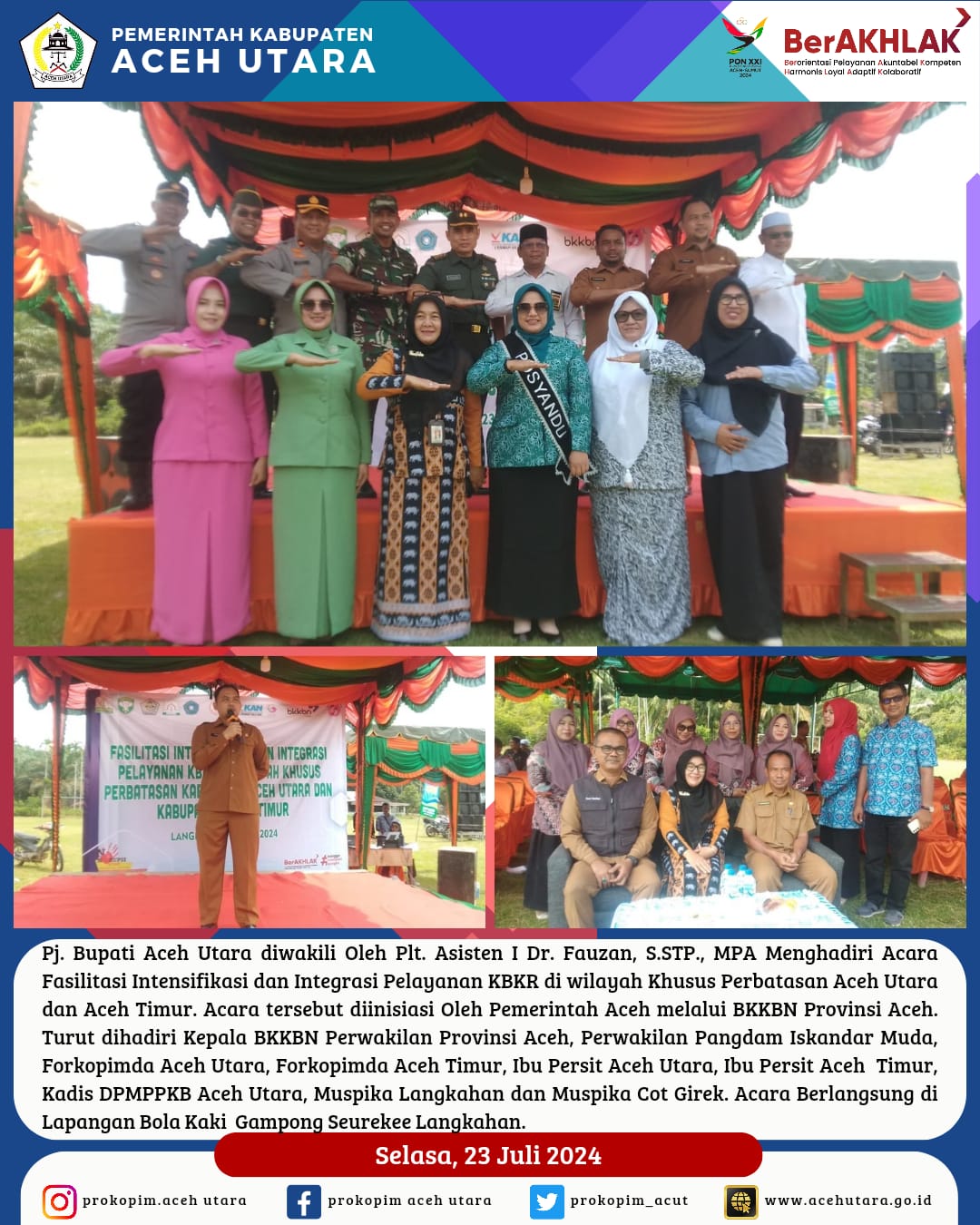 Suwenews.com-Penjabat Bupati Aceh Utara diwakili oleh Plt Asisten I Setdakab Dr Fauzan, SSTP, MPA, menyampaikan apresiasi atas digelarnya kegiatan fasilitasi intensifikasi dan pelayanan Keluarga Berencana dan Kesehatan Reproduksi (KBKR) di wilayah khusus di Gampong Seureuke Kecamatan Langkahan, Selasa, 23 Juli 2024.