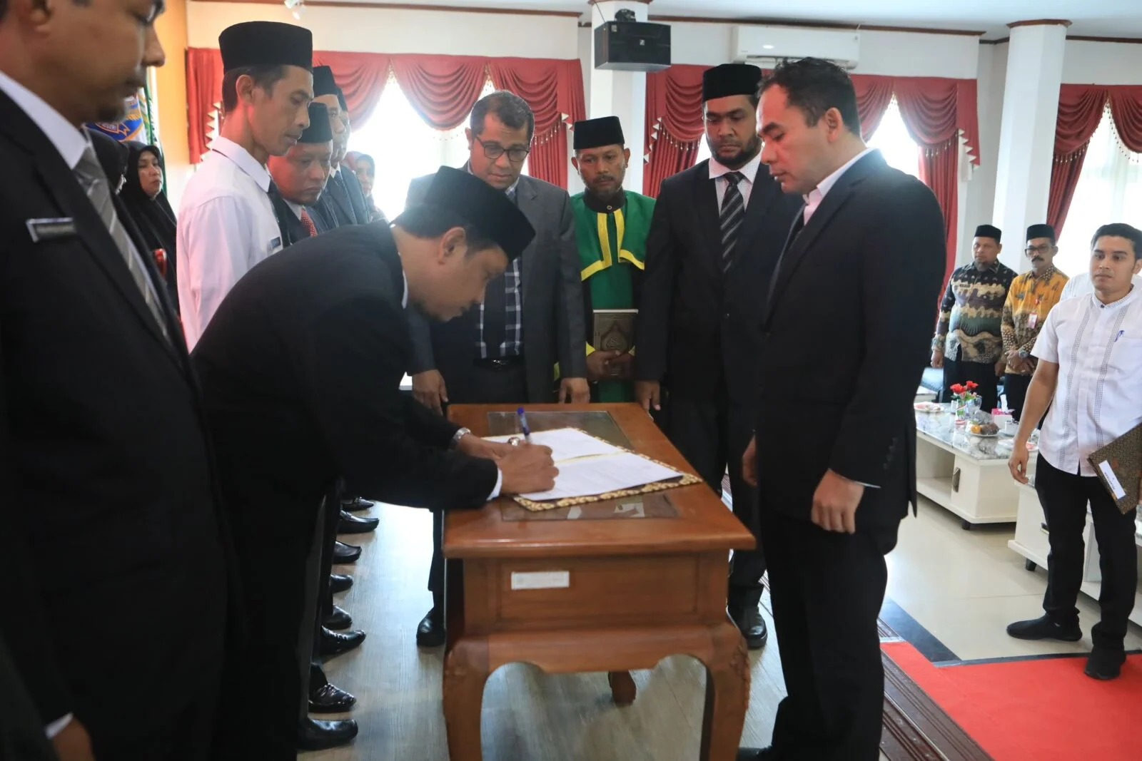 Suwenews.com— Dalam rangka memperkuat birokrasi yang profesional, bersih, dan responsif, Wali Kota Lhokseumawe, Dr. Sayuti Abubakar, SH, MH, melantik sejumlah Pejabat Administrator, Pengawas, dan Kepala Sekolah di lingkungan Pemerintah Kota Lhokseumawe. Pelantikan ini berlangsung di Aula Kantor Wali Kota, Jumat (4/7/2025), disaksikan oleh sejumlah pejabat dan tamu undangan.