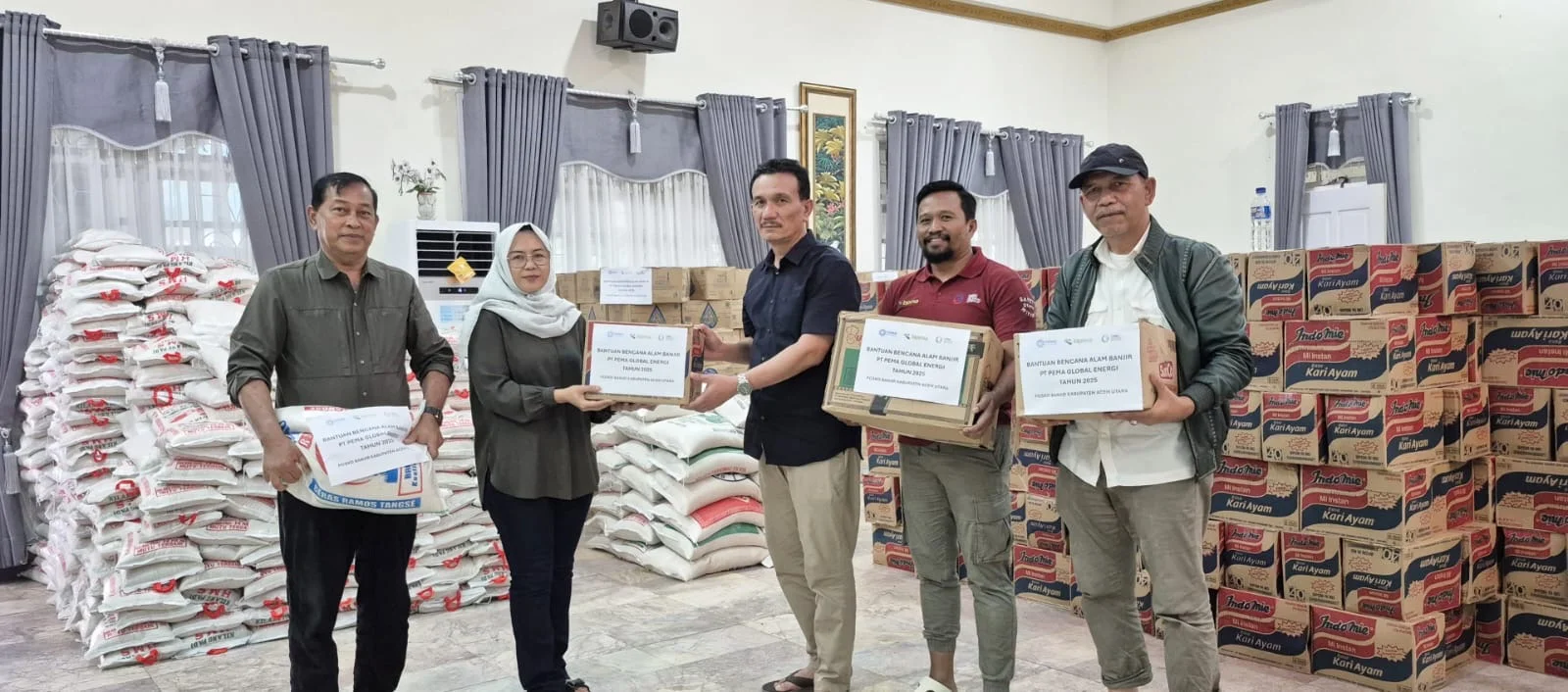 Ralations Manager PGE, Willya Retnosari, menyerahkan bantuan secara simbolis yang diterima oleh Plt Sekda Aceh Utara, Jamaludin, S.Sos., M.Pd, di posko induk banjir Kabupaten Aceh Utara, pada Jum’at (28/11/2025).Suwenews.com – PT. Pema Global Energi (PGE) atas dukungan Badan Pengelola Migas Aceh (BPMA) menyalurkan bantuan darurat banjir kepada masyarakat Aceh Utara dan Kota Lhokseumawe dengan menyalurkan sembako pada Jumat (11/28/2025).