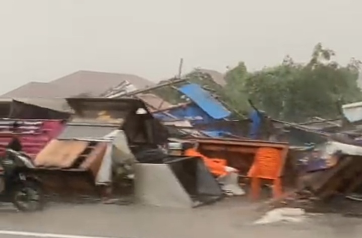 Berdasarkan video beredar, puluhan warung buah dan sayuran hancur. Bahkan kerusakan bermacam-macam, ada yang roboh diterbangkan angin.