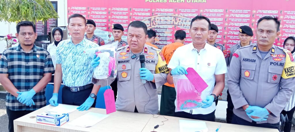 “Pelaku ditangkap diduga telah melakukan pelecehan seksual terhadap anak dibawah umur berinisial CA (14) yang merupakan warga setempat,” kata Waka Polres Aceh Utara,Kompol Muhayat Efendi saat mengelar konferensi pers, Kamis (22/2).