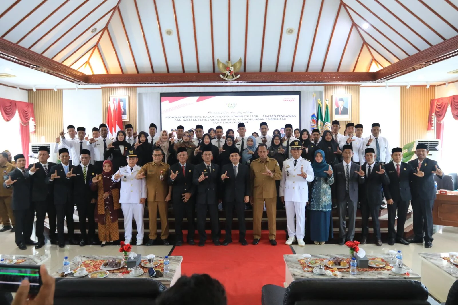 Suwenews.com — Wali Kota Lhokseumawe, Dr. Sayuti Abubakar, SH., MH., secara resmi melantik sejumlah pejabat administrator, pengawas, dan fungsional tertentu di lingkungan Pemerintah Kota Lhokseumawe. Acara pelantikan berlangsung khidmat di Aula Kantor Wali Kota Lhokseumawe, Selasa (7/10).